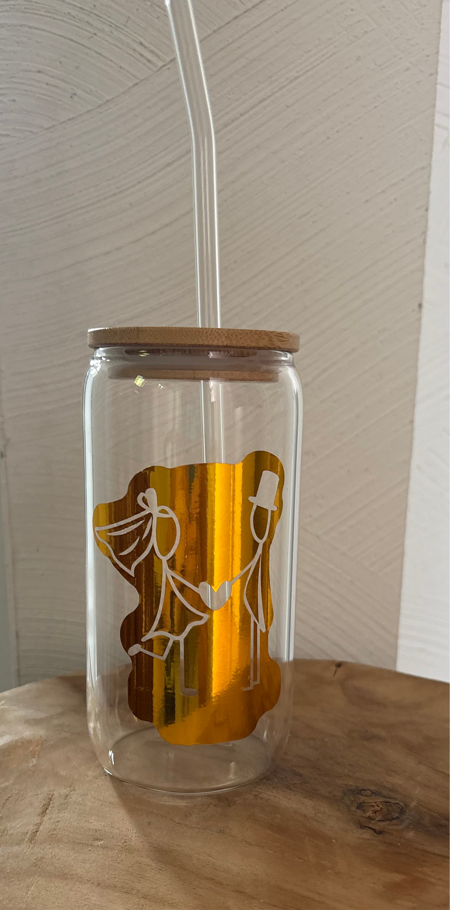 Das Forever Love Wedding Glass Cup 16oz ist das perfekte Geschenk für Brautpaare, Trauzeugen oder die beste Freundin beim Junggesellinnenabschied. Mit dem zarten Brautpaar-Motiv in Weiß und dem edlen goldfarbenen Hintergrund wird dieses Glas zu einem besonderen Highlight für romantische Anlässe.