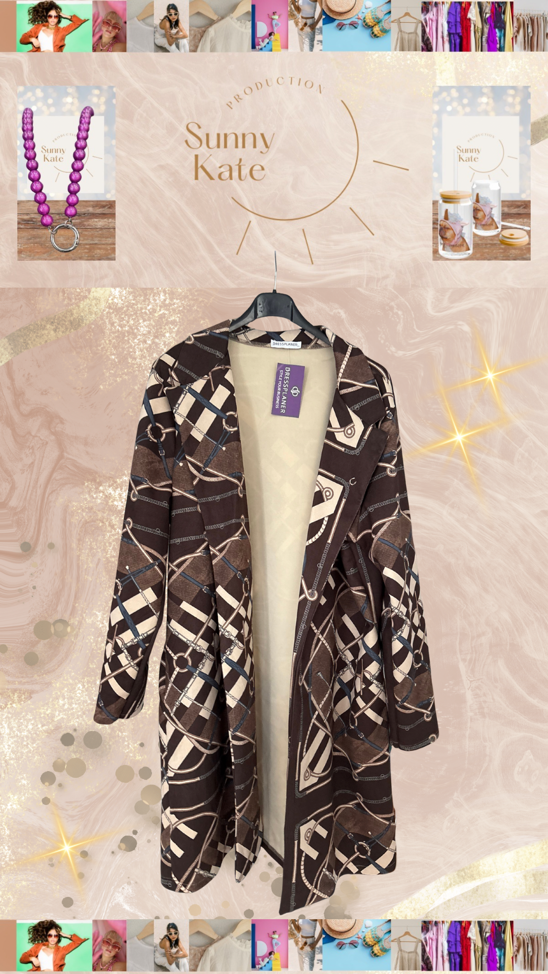 Dieser ausdrucksstarke Longblazer aus hochwertigem Wildlederimitat ist ein echtes Statement-Piece. Das edle Muster in Braun-, Beige- und Cremetönen verleiht dem Blazer eine elegante, leicht luxuriöse Ausstrahlung und macht ihn zu einem besonderen Hingucker für Alltag und Anlass.