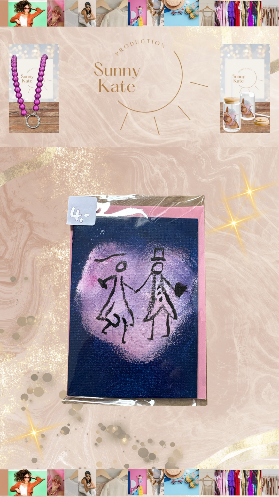 Ein kleines Kunstwerk voller Gefühl – dieses handgemalte Magnetbild zeigt ein stilisiertes Liebespaar vor einem Herz in zarten Rosa- und Violetttönen. Die reduzierte Darstellung macht es zeitlos und modern, während die handgemalten Details jedem Stück seine ganz eigene Seele verleihen.