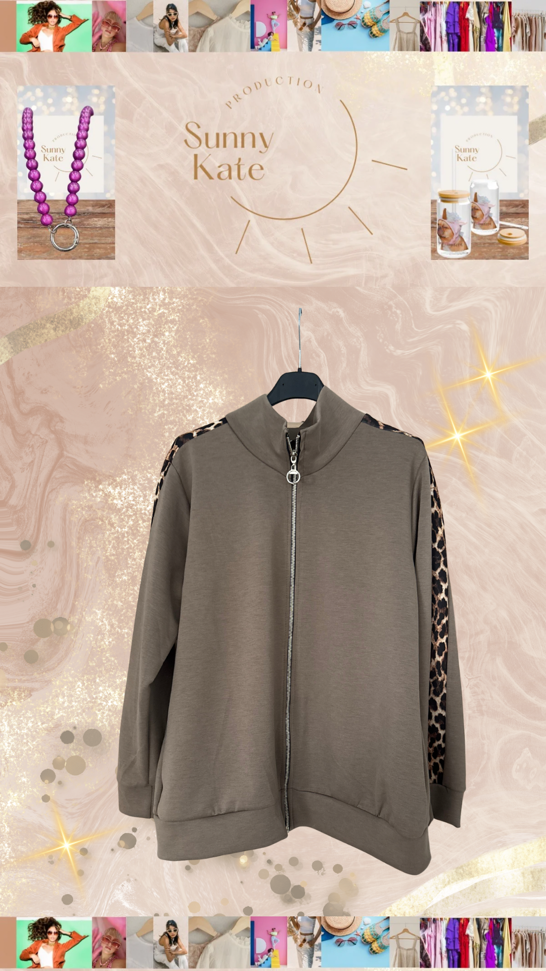 🤎 Savanna Soft – Zip-Jacke mit Leo-Detail Taupe · Gr. 36–42